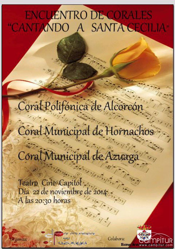 La Coral Municipal de Azuaga una vez más nos convoca a un nuevo concierto, “Cantando a Sta. Cecilia”, así de esta forma celebra el día de la patrona de la música el próximo sábado día 22 de noviembre, en el Cine Teatro Capitol de Azuaga.